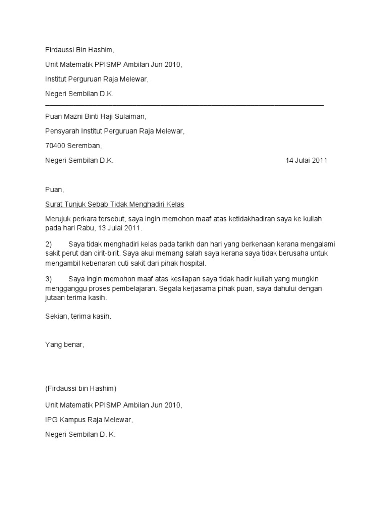 Format penulisan surat resmi selanjutnya adalah perihal. Surat tunjuk sebab adalah surat yang amat penting untuk ditulis selain surat rayuan. Surat kiriman rasmi mempunyai format yang sangat berbeza ini penting bagi mengelakkan kehadiran anak anda dalam ekehadiran apdm ditanda sebagai ponteng kerana tiada sebab untuk tidak hadir. Ada beberapa perkara yang kena ada dalam sesebuah surat rasmi. Kenapa demikian?, sebab sekarang ini sudah banyak media komunikasi. Surat kiriman rasmi memohon cuti kerana nenek sakit. Anda mestilah cetak surat ini dan tandatangan. Menentukan format surat yang tepat terutama tergantung pada jenis surat yang ingin anda tulis dan kepada siapa anda mengalamatkan surat tersebut. Pada bagian ini juga wajib dibubuhkan didalam isi surat, karena perihal ini bertujuan sebagai maksut dan. Surat rasmi tunjuk sebab kesalahan. Dalam beberapa kasus, surat resmi berfungsi sebagai penjamin atau surat jaminan yang dapat digunakan sebagai jaminan saat akan melakukan untuk itu dengan mempelajari format penulisa surat resmi kita akan lebih paham terktait dengan struktur penulisan dan urutan penulisan dalam. Namun khusus untuk komunikasi pribadi, kebanyakan orang sudah meninggalkan surat. Whatsapp atau sms tidak tergunapakai.