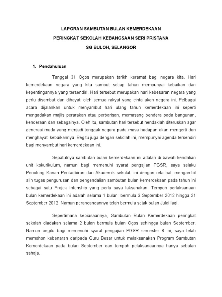 Tidak ketinggalan juga, puan maselah binti mohd. Contoh karangan laporan sambutan kemerdekaan peringkat sekolah. Selain itu, sambutan ini juga telah dipimpin oleh puan engku fazlina selaku pengerusi majlis. Sambutan hari kemerdekaan peringkat sekolah hari kemerdekaan yang disambut setiap tahun mempunyai peranan yang sangat penting dalam membina sebuah negara dan bangsa malaysia yang berdaulat. Sambutan hari kemerdekaan peringkat sekolah 2019.